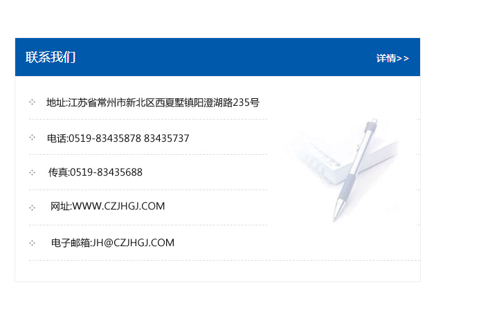 傳真:0519-83435688    郵編:213135    網址:WWW.czjhgj_com.hchjewelry.com    電子郵箱:JH@czjhgj_com.hchjewelry.com
